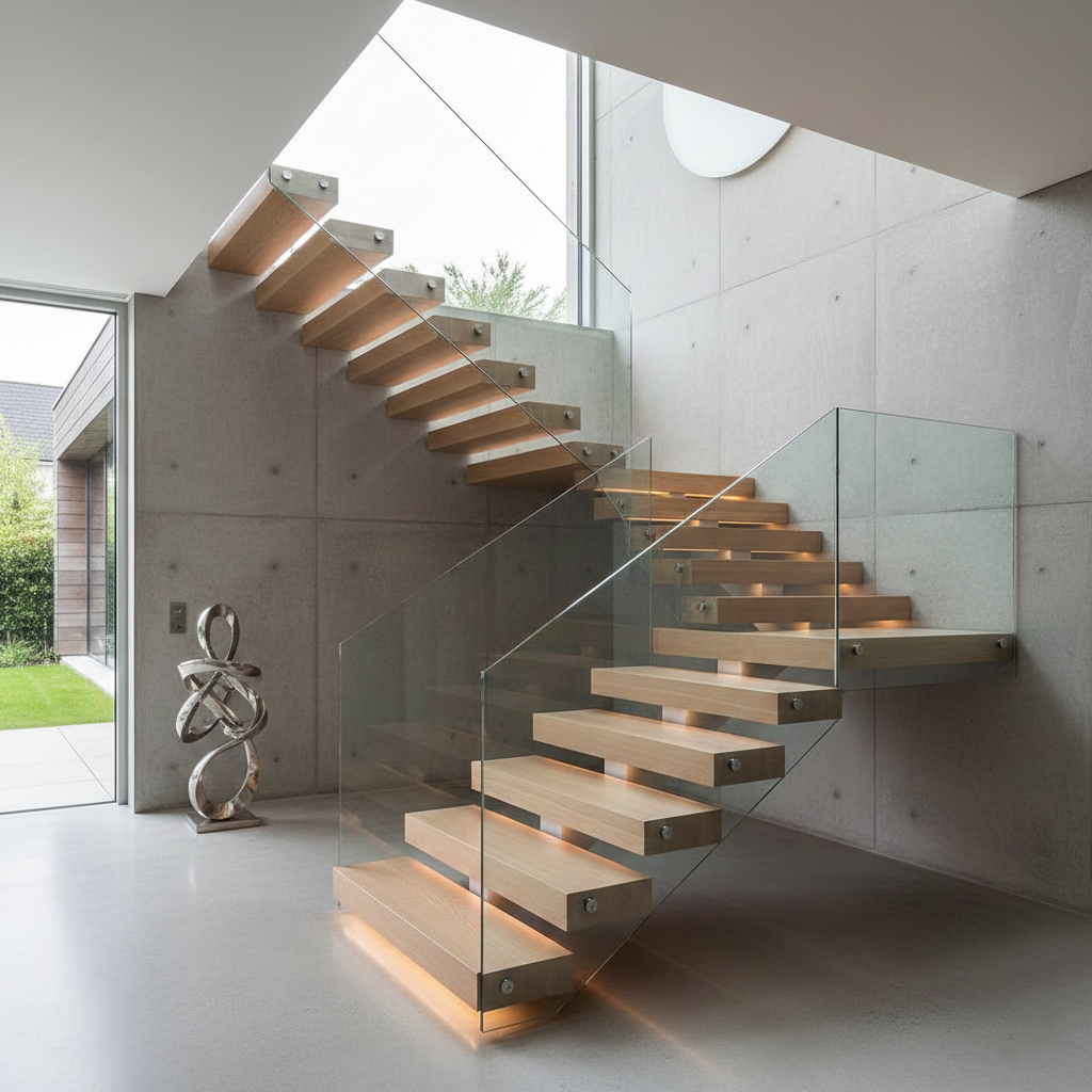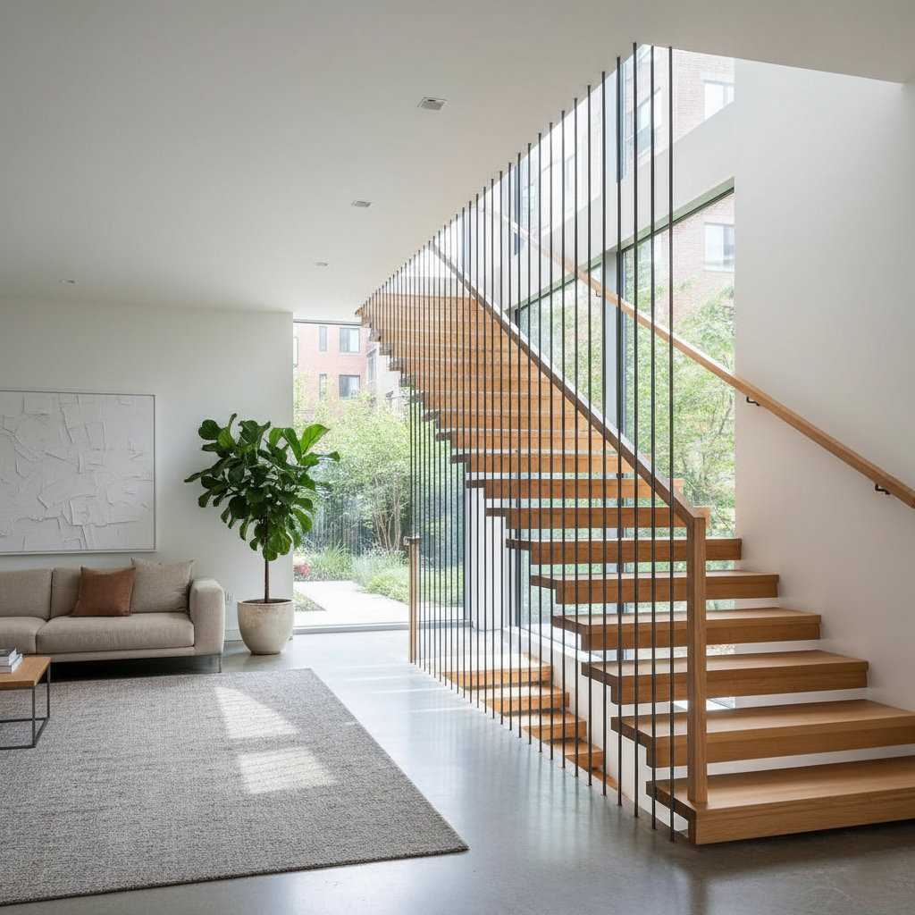 П-образные лестницы идеально подходят для просторных интерьеров, ценятся за удобство и выразительный стиль. Мы разрабатываем облицовку по вашим эскизам, подбираем материалы и детали, создавая гармонию линий и неповторимую эстетику на каждом уровне помещения.